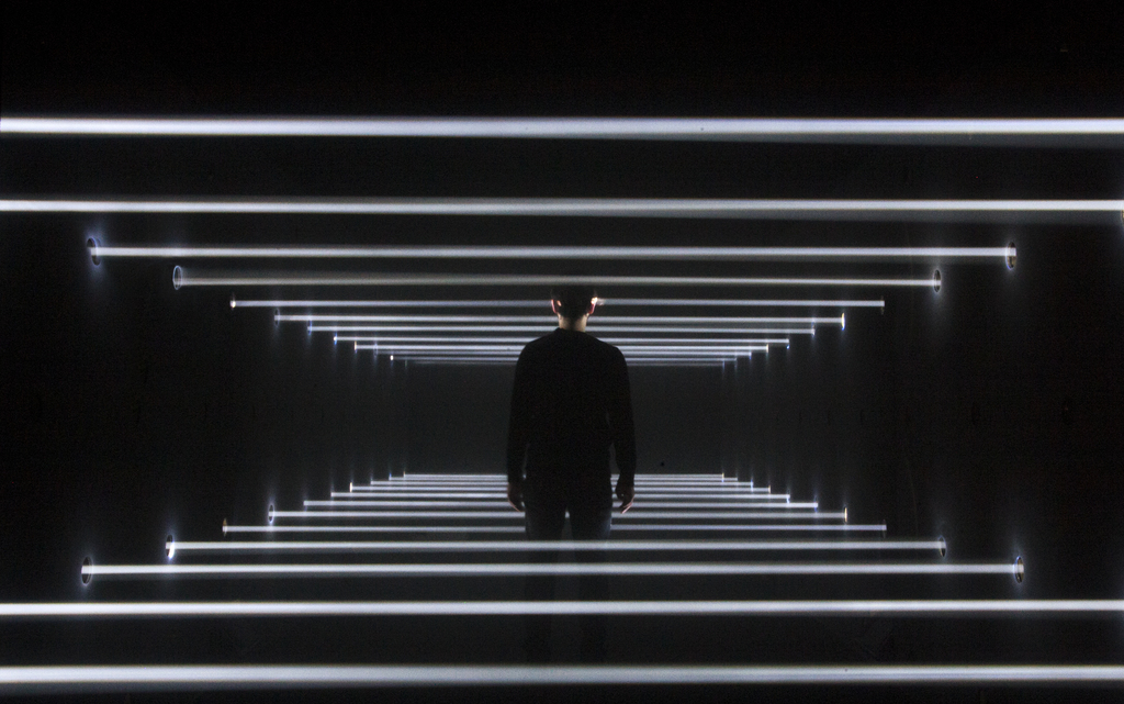 Licht, mehr Licht! is an immersive light corridor filled with animated beams and fog, where light feels almost tangible. Synchronized with sound, it shifts perception and invites the audience to walk through a hypnotic space between the visible and invisible.